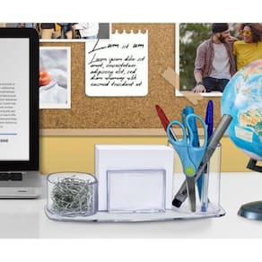 Porta lápis, clips e lembretes com bloco de 200 folhas acrimet