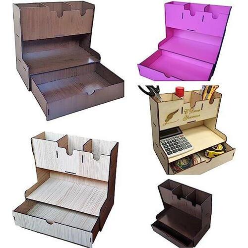 Porta lapis com gaveta porta treco modelo deluxe 6 cores mdf Cor: preto