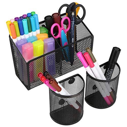 2 x Porta-lápis de malha magnética com compartimentos de armazenamento individuais