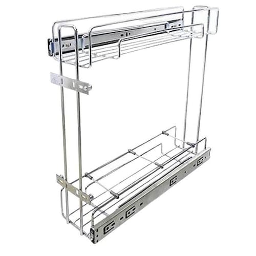 Conhecido também como porta-óleos é o aramado ideal para organizar ingredientes, temperos, condimentos do uso diário de forma prática e ergonômica da sua cozinha, utilizando melhor os espaços. Confeccionado em aço carbono com acabamento cromado, acompanha trilhos telescópicos zincados, que vão desmontados da peça e insumos para a fixação dos mesmos.