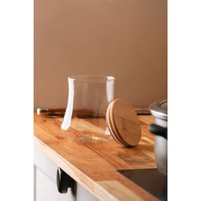 Mantenha seus mantimentos frescos, organizados e com estilo com o Porta Mantimento de Vidro Borossilicato com Tampa de Bambu da Wolff.