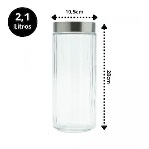Porta Mantimento Vidro Tampa Inox Visor Acrílico Sydney 2,1L