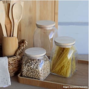 Porta Mantimento de Vidro com Tampa de Bambu 720ml 1916 - Lyor - Dorémi Casa e Decor