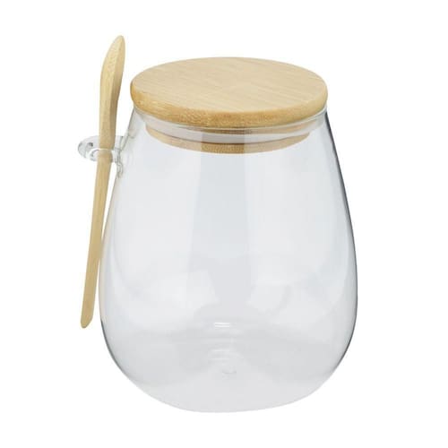 - 01 Porta Mantimento em Vidro Borossilicato com Tampa e Colher em Bambu 400ml