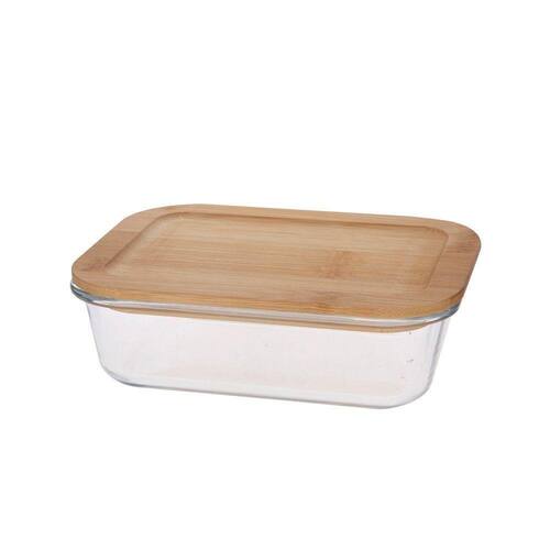 - 01 Porta Mantimento Retangular em Vidro Borossilicato com Tampa em Bambu 640ml