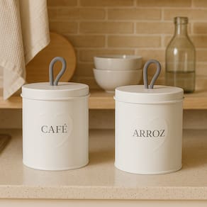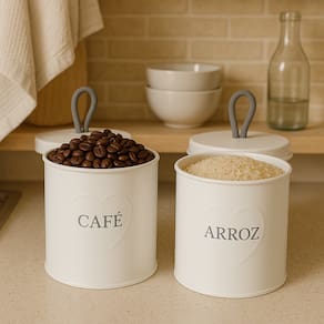 Leve charme e organização para a sua cozinha com estas elegantes Latas Decorativas com Puxador de Corda. Perfeitas para armazenar itens essenciais como café e arroz, essas latas unem funcionalidade e um design minimalista que combina com diversos estilos de decoração, do rústico ao contemporâneo.