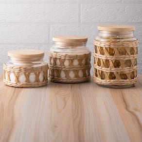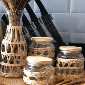 Material de Alta Qualidade; Fabricado em vidro resistente, o porta mantimentos preserva a frescura dos alimentos. Os detalhes em sisal e a tampa de madeira proporcionam não apenas estilo, mas também durabilidade.