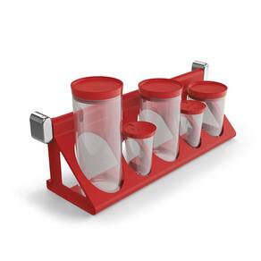 Contêm: 1 pote de 2,5 litros Medidas: 29,8 x 12,3 x 12,3 cm 1 pote de 1,9 litros Medidas: 23,9 x 12,3 x 12,3 cm 1 pote de 1,4 litros Medidas: 17,9 x 12,3 x 12,3 cm 2 potes Farinheiro Medidas: 16 x 8,7 x 8,7 cm 1 Suporte de parede Medidas: 63,5 x 31 x 20 cm