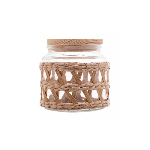 • 1 Porta Mantimentos em Vidro com Sisal e Tampa em Madeira