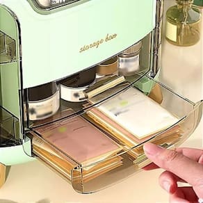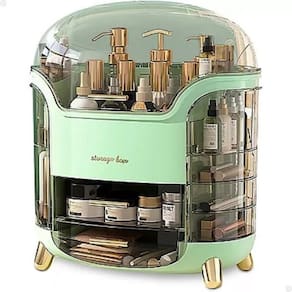 Espaçamento Inteligente: O organizador conta com compartimentos de vários tamanhos e gavetas, permitindo que você armazene tanto produtos de maior porte, como cremes e loções, quanto itens menores, como batons, pincéis e outros acessórios. A tampa superior transparente protege os produtos da poeira, garantindo que fiquem sempre limpos e acessíveis.