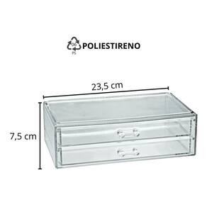 O gaveteiro com duas gavetas em poliestireno vai ajudar a organizar suas maquiagens de maneira muito mais prática. Ele é compacto e, tendo duas gavetas, organiza o dobro de maquiagens ocupando menos espaço. Ele poderá ser posicionado em seu guarda-roupa, escrivaninha, penteadeira, gaveta ou etc. Produzido em poliestireno, material nobre e resistente, inclusive contra quedas, transformando-o em um produto durável e de extrema qualidade.