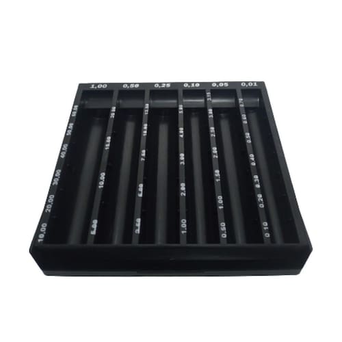 Com separações para todas as moedas. Identificando valores em suas marcações. Material polipropileno