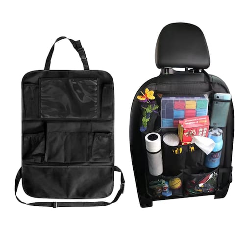 Organizador Multiuso Veicular      Com esse acessório você vai aproveitar melhor o espaço interno do seu carro e permite que você transporte seus objetos sem bagunça. Você pode levar brinquedos, bebidas, comidas... Possui espaço para transportar tablets, para manter seus passageiros entretidos.    Ideal para transporte de passageiros.   Possui alças e fechos de fácil e rápida instalação, produzido em tecido Oxford, é leve e durável.    Pode ser instalado nos bancos frontais e porta malas.        Conteúdo da embalagem: - Contém 1 Organizador multiuso Veicular.     Características: - Produzido em Oxford 600D; - Poussui alças ajustáveis e fechos; - Diversos bolsos para organizar seus objetos.     Instalação fácil: - Basta regular as alças e prender no banco.