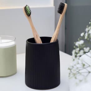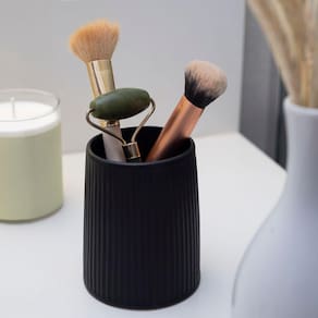 Esse é o porta objetos de resina listras preto da OIKOS.Prático: seu banheiro muito mais bonito e arrumado. serve como apoio para organizar e deixar seus objetos preferidos sempre ao alcance das mãos. dá para guardar pinças, lâminas de barbear, elásticos de cabelo, pentes, lixas de unha e pincéis de maquiagem. o que não falta é funcionalidade para esse produto. este porta objetos é aquela peça coringa que veio para ajudar na organização no dia a dia.Onde se usa? no lavabo fica ótimo e no banheiro também. e quer uma dica? ele fica bem bonito quando é apoiado em cima de uma bandeja na bancada da pia, do lado do porta sabonete! e ele não para por aí, vai bem na cozinha, no quarto e no escritório, você escolhe.Superfície assimétrica: é decorativo e traz para seus cômodos todo o charme da tendência industrial e contemporânea. um item indispensável que também consegue transformar seus ambientes, além de encantar as visitas :)Feito de resina: a poliresina é um material estável e resistente, não deforma e é bem difícil de quebrar. ainda é impermeável e um clássico na decoração. o tom preto fosco também deixa a casa mais moderna e suave. Além da peça avulsa, você encontra outros itens dessa família para deixar sua decoração completa: temos a saboneteira, o porta sabonete líquido e escova sanitária com suporte. todos os produtos estão disponíveis na cor preta e verde.Cuidados: lave com água e sabão neutro em seguida passe suavemente um pano seco. não utilize produtos químicos ou abrasivos na limpeza.