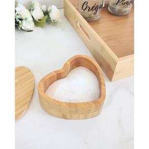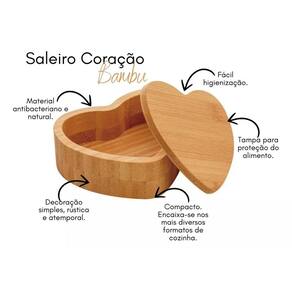 Características: cor: Natural material: Bambu Dimensões: 12x10x5cm Conteúdo: 1 saleiro em forma de Coração Compacto ocupa pouco espaço Importante: