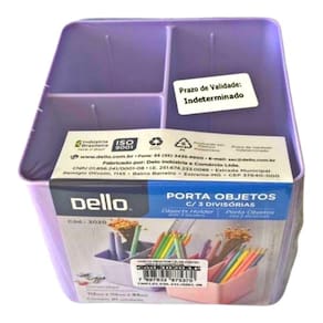 Porta Objetos Lilas Pastel com 3 divisórias Dello Porta Lápis Clips e Objetos Lilás Pastel Com 3 Divisórias Dello Especificações: Cor: Lilás PastelMedidas: 112 x 112 x 90 mmPeso: 0.23 kgEm poliestireno Com 3 divisórias para melhor aproveitamento Organizador, organização de gavetas, organização de escritório, porta objetos, Dello , delo, poliestireno, 3004Cor: Cristal