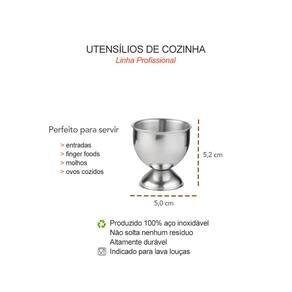 Porta Ovo como mini taça. Perfeito para servir ovos cozidos ou ovos quentes, evitando que escorregue ou queime as mãos. O porta ovo possui uma base para manter estabilidade ao objeto, proporcionando mais segurança em seu manuseio. O suporte em aço inox, garante a durabilidade da peça, pois nao enferruja e mantem o brilho por muito mais tempo.