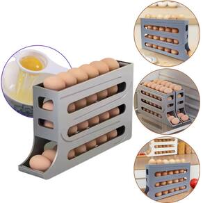 Porta Ovos 4 Andares Organizador de Geladeira Rolante Cinza Descrição do Produto: Organização, praticidade e segurança para seus ovos em um só produto. Com o Porta Ovos Organizador de Geladeira com 4 Andares, você mantém seus ovos frescos, protegidos e sempre ao alcance das mãos. benefícios que fazem a diferença: