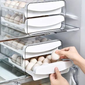 Porta Ovos Acrilico Organizador Geladeira Gaveteiro Duplo Capacidade De 32 Ovos Solução prática e eficiente para armazenar e organizar até 32 ovos com e economia de espaço. Com dimensões aproximadas de 22,5 cm de comprimento, 21 cm de largura e 14 cm de altura, o produto conta com duas gavetas empilháveis que otimizam o uso do espaço na geladeira ou despensa. Fabricado em plástico resistente de alta qualidade, como PET ou PP, o porta ovos é durável, fácil de limpar e para uso com alimentos. Seu design transparente permite visualizar facilmente a quantidade de ovos armazenada, enquanto o sistema de gavetas facilita o acesso sem risco de amassamento ou quebra. Ideal para uso doméstico, o organizador pode ser empilhado com outras unidades, tornando-se uma solução ível para diferentes necessidades de armazenamento. Leve, compacto e funcional, alia praticidade, higiene e um visual moderno, sendo perfeito para manter sua cozinha sempre organizada e os alimentos bem protegidos Especificações: Dimensões: 22,5 cm de comprimento, 21 cm de largura e 14 cm de altura Material: Plástico Capacidade: 32 unidades Cor: Branca Peso: 505g