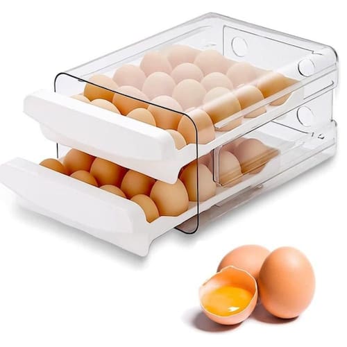 Porta Ovos Acrilico para Geladeira Gaveteiro Duplo 32 Ovos Organizador de Ovos 32 Unidades Descubra uma solução prática, higiênica e econômica para armazenar até 32 ovos com acesso fácil e visualização rápida, ideal para geladeira ou despensa.