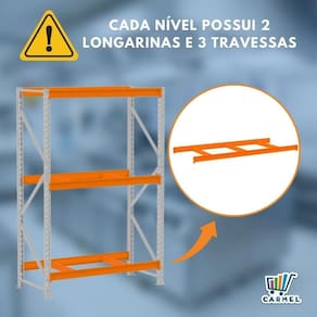 Prático e versátil, além de ser de fácil montagem. Dispensa o uso de empilhadeiras, onde as mercadorias são depositadas e retiradas manualmente dos planos. Produzido em aço resistente, com capacidade de 500 kg por nível e reforço nas laterais é indicado para depósitos, estoques e exposição, como: pet shops, oficinas, lojas de materiais de construção e mini atacarejos.