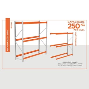 Prático e versátil, além de ser de fácil montagem. Dispensa o uso de empilhadeiras, onde as mercadorias são depositadas e retiradas manualmente dos planos. Produzido em aço resistente, com capacidade de 250 kg por nível e reforço nas laterais é indicado para depósitos, estoques e exposição, como: pet shops, oficinas, lojas de materiais de construção e mini atacarejos.