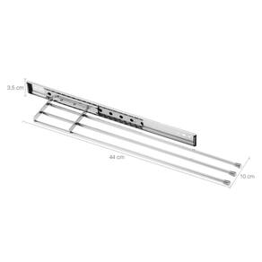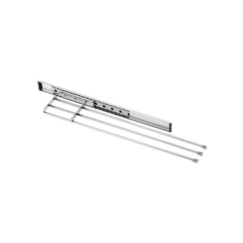 Garantia: 1 Ano / Peso: 680g / Cor: Cromado / Ref: 72106 Dimensões: 46cm (c) x 10cm (l) x 3,5cm (a). Cuidados: Não lavar com materiais abrasivos. Capacidade: Comporta até 3 panos de prato.
