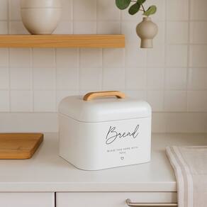 Porta Pão de Metal Off White com Alça em Madeira Crisp - P -