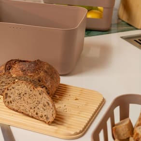 Com design moderno e minimalista, combina a base em polipropileno bege resistente com a tampa em bambu natural, que além de elegante, presenva a textura e o sabor do pão.