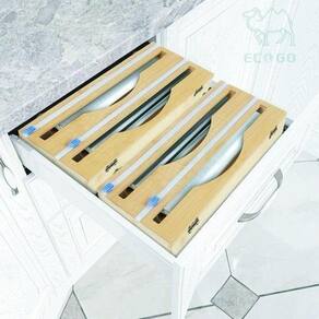 Dispensador de embalagem de alimentos, filme e papel alumínio, cortador de filme de preservação com suportes.