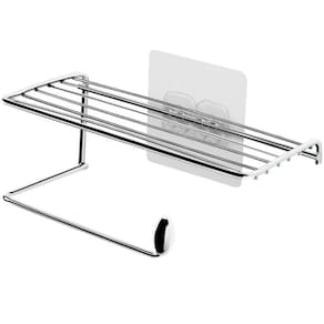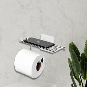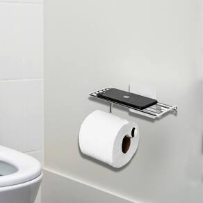 Porta Papel Higiênico com Suporte para Celular Aço Cromado de Parede Linha Adesiva Utimil.