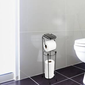 Porta Papel Higiênico com Suporte para Celular Papeleira para Banheiro de Chão Preta Utimil.