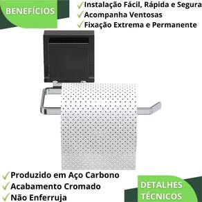 Eleve o padrão do seu banheiro com o Porta Papel Higiênico Com Ventosa Papeleira Cromado FS.RBT que une design contemporâneo, funcionalidade, durabilidade e praticidade em um único produto. É a escolha perfeita para quem busca uma solução pratica e elegante para organizar seu papel higiênico.O design moderno deste Porta Papel Higiênico permite acomodar seu Papel Higiênico de maneira organizada e acessível. Cada suporte é projetado para segurar o Papel Higiênico de forma segura, evitando que escorreguem ou caiam.O Porta Papel Higiênico Com Ventosa Papeleira Cromado tem como sua maior característica em destaque a sua capacidade de fixação por ventosas. As ventosas são projetadas para fixar firmemente em superfícies lisas, como azulejos, vidros, espelhos, porcelanas e cerâmica, sem a necessidade de perfurar a parede. Isso torna a instalação rápida, simples e sem danos à superfície, proporcionando facilidade para reposicionar o suporte conforme desejado.Construído com materiais de alta qualidade, o suporte é robusto e durável, garantindo uma longa vida útil. Sua cor Prata Brilhante confere um toque moderno e sofisticado, que complementa uma variedade de estilos de decoração.Além disso, o suporte é fácil de limpar, bastando um pano úmido para remover poeira ou sujeira eventual. Sua manutenção simples garante que o suporte mantenha seu aspecto elegante ao longo do tempo.INSTALAÇÃO:Limpeza da Superfície: Certifique-se de que a superfície onde você deseja fixar a ventosa esteja limpa e livre de poeira, graxa ou qualquer substância que possa interferir na aderência.Umidade: Molhe levemente a ventosa. Isso cria um selo temporário com a superfície e ajuda na aderência.Pressão Firme: Pressione a ventosa contra a superfície desejada e gire para a direita até travar.ESPECIFICAÇÕES TÉCNICAS:Material: Aço CarbonoMaterial Ventosas: Plástico ABSAcabamento: CromadoCor: PrataTratamento Antiferrugem MEDIDAS:Altura: 7,4cmLargura: 13,6cmProfundidade: 9,4cm ITENS INCLUSOS:1 - Porta Papel Higiênico1 - VentosaIMPORTANTE:Evite fixar a ventosa em superfícies porosas ou irregulares, pois isso pode comprometer a aderência. Além disso, é importante seguir as instruções específicas fornecidas pelo fabricante do porta papel higiênico para garantir a fixação correta e durabilidade ao longo do tempo.Remover regularmente a cada 3 meses e reaplicar conforme instruções de montagem.Nunca utilize este produto com peso superior ao indicado.Não use chaves, facas e objetos pontiagudos para retirar o produto da superfície. Marca: Fassin Shop