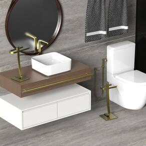 Este elegante kit Dourado é composto por duas peças separadas: um Porta Papel Higiênico de Chão para 1 rolo e um Porta Toalha de Bancada para Lavabo, ideal para quem valoriza praticidade com um toque moderno na decoração.