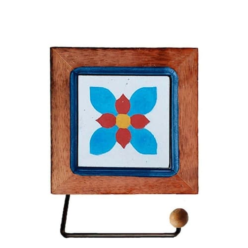 Porta Papel Higiênico Madeira Rústica Azulejo Com Ladrilho Hidráulico