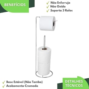 Transforme a aparência do seu banheiro de forma simples e elegante com o Porta Papel Higiênico Papeleira De Chão Cromado F.ARM.Com um design moderno e minimalista, o Porta Papel Higiênico Papeleira De Chão Cromado F.ARM, ideal para qualquer banheiro, seja para sua casa, escritório ou até mesmo para o lavabo, este suporte combina funcionalidade com estilo.O Porta Papel Higiênico de Chão é fabricado utilizando Aço com acabamento Cromado, proporcionando maior durabilidade, resistência e garantindo que não ocorrerá oxidação nem ferrugem.Design Moderno e Funcional: Mantenha seu banheiro organizado e elegante com o Porta Papel Higiênico Papeleira De Chão Cromado F.ARM. Com um acabamento cromado brilhante, este suporte se adapta perfeitamente a qualquer decoração, trazendo um toque de sofisticação.Praticidade e Estilo: Este porta papel higiênico é ideal para quem busca praticidade sem abrir mão do estilo. Compacto e fácil de movimentar, ele acomoda até 3 rolos de papel higiênico, garantindo que você nunca fique sem reposição.Durabilidade Garantida: Feito em material de alta qualidade, o suporte cromado é resistente à corrosão e ao desgaste, proporcionando durabilidade e fácil manutenção.Instalação Fácil: Não requer perfuração nem ferramentas complicadas. Basta posicionar onde for mais conveniente para você.ESPECIFICAÇÕES TÉCNICASMaterial: AçoAcabamento: CromadoTratamento AntiferrugemMEDIDASAltura: 47cmDiâmetro da Base: 14cmHaste Para Rolo: 13cmITENS INCLUSOS1 Porta Papel Higiênico de Chão Marca: Fassin Shop