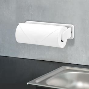 Porta papel toalha cozinha suporte de parede para rolo Porta papel toalha cozinha suporte de parede para rolo - branco Porta rolo de papel toalha, fabricado em plástico, irá facilitar o destaque dos pedaços picotados do papel. O produto é leve e com um design moderno, deixando sua cozinha mais prática e organizada. Acompanha bucha e parafusos para fixação.Pode ser fixado com fita 3m não acompanha Para rolos de até 23cm Contém: 1 peçaCor: branco composição: 100% pp