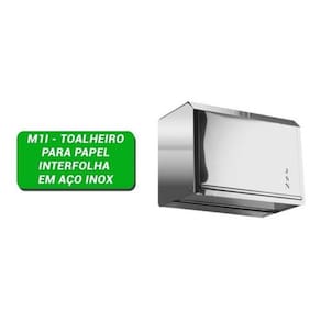 Porta papel toalha inox toalheiro folhas inter folhadas m1i Cor: prateado Toalheiro interfolha em aço inox --------------------atenção------------------------ Produtos em inox são enviados com plastico de proteção branco para não arranhar, precisa retirar a proteção antes do uso.