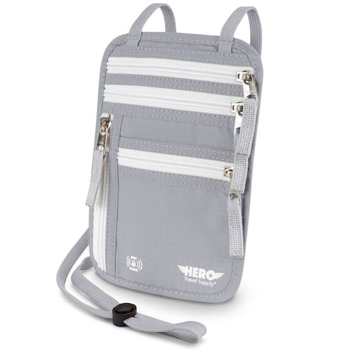 Carteira Hero Neck – Suporte para passaporte com bloqueio RFID – Bolsa de viagem fácil de ocultar, Cinza-claro, tamanho único, Carteira RFID