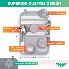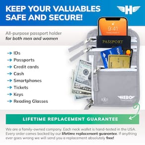 - Acessibilidade simplificada: um design elegante e fácil de usar, confortável e leve. Nossa carteira Hero Neck facilita adicionar ou remover itens, incluindo passaportes e smartphones grandes, para acesso rápido a viagens.