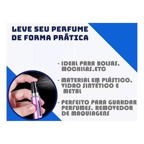 Porta Perfume Borrifador Decant Recarregável - 5ml Cor: Rosa Brilante Não corra mais riscos de quebrar seu vidro de perfume inteiro dentro de suas malas e bolsas, sendo supercompactos, você não terá a necessidade de carregar os vidros de perfume gigantes em sua bolsa Utilizando este porta perfume recarregáveis, você poderá levar seus diferentes perfumes favoritos dentro de bolas ou malas para qualquer lugar de forma mais fácil e despreocupada Com 5ml de capacidade, super discreto, resistente e com tampa em spray podendo recarregá-los quantas vezes quiser apenas retirando a tampa spray do seu perfume e pressionando a base do pequeno frasco repetidas vezes para encher o recipiente interno. Cores belas e vibrantes, em modelos em cores fosca ou cromados metalizados. Com este porta perfume terá mais perfumes para lhe acompanhar em qualquer lugar sem ocupar tanto espaço Marca: Cheiro Do Brasil