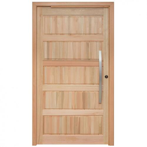 Porta pivotante de almofadas. Composta por: 1 folha de porta, marco, guarnições para um lado, dobradiças pivotantes, fechadura e puxador. Marco simples. Folha de porta de 1,10m. Fechadura Alavanca Stam. Peitoril removível, para instalação sobre o piso, reduzindo em 3 cm a altura do marco (de 2,17 passa para 2,14). Produto pronto para instalação. Acompanha Batedor: Sim Acompanha Batente: Sim Acompanha Dobradiça: 02 Acompanha Fechadura: Sim Acompanha Guarnição: Sim Acompanha Manual de Instalação: Sim Acompanha Puxador: 01 Acompanha Trinco: Não Altura: 217 cm codigo_ean: 7899641816971 Cor: Natural Cor do Batente: Marrom Cor do Produto: Natural Elétrica: Não Escala de Brilho: Fosco Espessura: 3 cm Itens Inclusos: 1 Folha De Porta, Marco, Guarnições Para Um Lado, Dobradiças Pivotantes, Fechadura, Manual E Puxador. Lado de abertura: Esquerda Largura: 117 cm Largura do Batente: 9,4 cm Manual de Montagem e Instalação: https://product-hub-prd.madeiramadeira.com.br/664190/documents/c76e47d9-30bd-4814-8bbf-efac5ec0be7bvaodasesquadriasconvertido.pdf Marca: Rondosul Material da Dobradiça: Aço Material do Batente: Madeira Material Principal: Madeira Maciça Medida do Vão: 220cmx120cm Necessita Montagem: Não Número de Folhas: 01 Origem do Produto: Nacional Peso: 62 kg Possui Grade: Não Preenchimento da Porta: Maciça Recomendações de Uso, Manutenção e Limpeza: O Produto Deve Ser Pintado E Bem Instalado Para Haver Garantia. Produto Sem No Mínimo Duas Demãos De Pintura E/Ou Mal Instalado E/Ou Mal Conservado São Situações Que Não São Aceitas Pela Garantia. Aconselhamos A Imunização Contra Insetos (Cupim) Com Produto Adequado, Pois A Madeira Não É Tratada Na Fábrica. Textura da Porta: Almofadada Tipo de Dobradiça: Simples Tipo de Madeira: Eucalipto Tipo de Porta: Pivotante Tipo de Puxador: Externo Vidro incluso: Não Marca: Não Informado