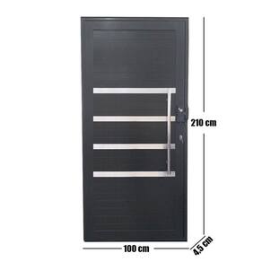 Porta Pivotante de Alumínio 210 x 100cm com Friso e Fechadura Digital Linha 30 Esquerda Preto