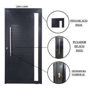 Aplicado em local: interno ou externo Ambientes Recomendados: Externo;Interno Acabamento do Puxador: Inox Acompanha Batedor: Não Acompanha Batente: Sim Acompanha Fechadura: Sim Acompanha Guarnição: Não Acompanha Manual de Instalação: Sim Acompanha Puxador: 02 Acompanha Trinco: Não Altura: 210 cm codigo_ean: 7898683665691 Cor: Preto Cor do Batente: Preto Cor do Produto: Preto Cor Predominante: Preto Dimensão da Máquina da Fechadura: 25.0000 Escala de Brilho: Semi-Brilho Isolamento Acústico: Não Itens Inclusos: 1 Porta Lado de abertura: Esquerda Largura: 100 cm Largura do Batente: 4,5 cm Linha ou Coleção: Linha 30 Manual de Montagem e Instalação: https://product-hub-prd.madeiramadeira.com.br/864589/documents/30772a35-a4d4-4592-b716-84ac5298af89uCOesdeinstalaCAopivotante.pdf Material do Batente: Alumínio Material do Puxador: Aço Material Principal: Alumínio Necessita Montagem: Não Número de Folhas: 01 Origem do Produto: Nacional Peso: 22 kg Possui Grade: Não Tamanho: 210 x 100 cm Textura da Porta: Com detalhe vidro Tipo de Parede: Alvenaria Tipo de Puxador: Externo Tipo de Vidro: Liso Incolor Vidro incluso: Sim Marca: Esquadrias Bergamo Ean: 7898683665691