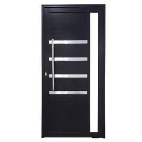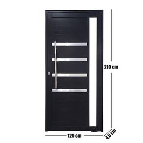 Porta Pivotante de Alumínio 210 x 120cm com Friso e Visor 30 Esquerda Esquadrias Bergame Preto
