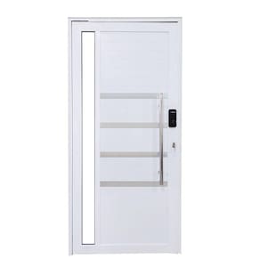 Porta Pivotante de Alumínio Branco Com Puxador, Friso e Vidro com Fechadura Digital Linha 30 - Bergame