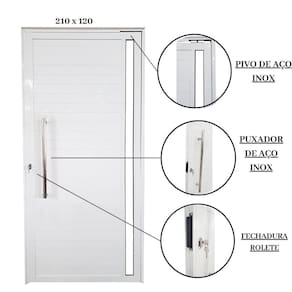 Aplicado em local: interno ou externo Vidro: Liso Ambientes Recomendados: Externo;Interno Acabamento do Puxador: Inox Acompanha Batedor: Não Acompanha Batente: Sim Acompanha Fechadura: Sim Acompanha Guarnição: Não Acompanha Manual de Instalação: Sim Acompanha Puxador: 02 Acompanha Trinco: Não Altura: 210 cm codigo_ean: 7898683666506 Cor: Branco Cor do Batente: Branco Cor do Produto: Branco Cor Predominante: Branco Dimensão da Máquina da Fechadura: 25.0000 Escala de Brilho: Semi-Brilho Espessura: 4,5 cm Espessura do Vidro: 6 mm Isolamento Acústico: Não Itens Inclusos: 1 Porta Lado de abertura: Direita Largura: 120 cm Largura do Batente: 4,5 cm Linha ou Coleção: Linha 25 Manual de Montagem e Instalação: https://product-hub-prd.madeiramadeira.com.br/862697/documents/2e6614e0-0e00-4a04-aa37-2bef1fbab1bauCOesdeinstalaCAopivotante.pdf Material do Batente: Alumínio Material do Puxador: Aço Material Principal: Alumínio Necessita Montagem: Não Número de Folhas: 01 Origem do Produto: Nacional Peso: 18 kg Possui Grade: Não Tamanho: 210 x 120 cm Textura da Porta: Com detalhe vidro Tipo de Parede: Alvenaria Tipo de Puxador: Externo Tipo de Vidro: Liso Vidro incluso: Sim Marca: Esquadrias Bergamo Ean: 7898683666506
