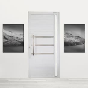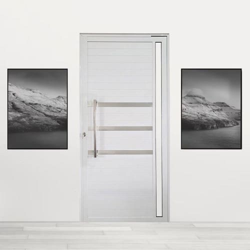 Porta Pivotante de Alumínio Branco Com Puxador, Friso e Vidro Linha Veneza - Bergame