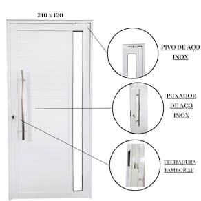 Aplicado em local: interno ou externo Ambientes Recomendados: Externo, Interno Acabamento do Puxador: Inox Acompanha Batedor: Não Acompanha Batente: Sim Acompanha Fechadura: Sim Acompanha Guarnição: Não Acompanha Manual de Instalação: Sim Acompanha Puxador: 02 Acompanha Trinco: Não Altura: 210 cm codigo_ean: 7898683666353 Cor: Branco Cor do Batente: Branco Cor do Produto: Branco Cor do Produto: Branco Cor Predominante: Branco Dimensão da Máquina da Fechadura: 25.0000 Escala de Brilho: Semi-Brilho Isolamento Acústico: Não Itens Inclusos: 1 Porta Lado de abertura: Esquerda Largura: 120 cm Largura do Batente: 4,5 cm Linha ou Coleção: Linha 30 Manual de Montagem e Instalação: https://product-hub-prd.madeiramadeira.com.br/864191/documents/92cfe7f9-4822-4b3b-a5a4-ed1e72402c29uCOesdeinstalaCAopivotante.pdf Material do Batente: Alumínio Material do Puxador: Aço Material Principal: Alumínio Necessita Montagem: Não Número de Folhas: 01 Origem do Produto: Nacional Peso: 25 kg Possui Grade: Não Textura da Porta: Com detalhe vidro Tipo de Parede: Alvenaria Tipo de Puxador: Externo Vidro incluso: Não Marca: Esquadrias Bergamo Ean: 7898683666353
