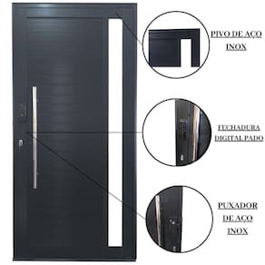 Porta Pivotante de Alumínio 210 x 120cm com Visor e Fechadura Digital Linha 30 Esquerda Preto